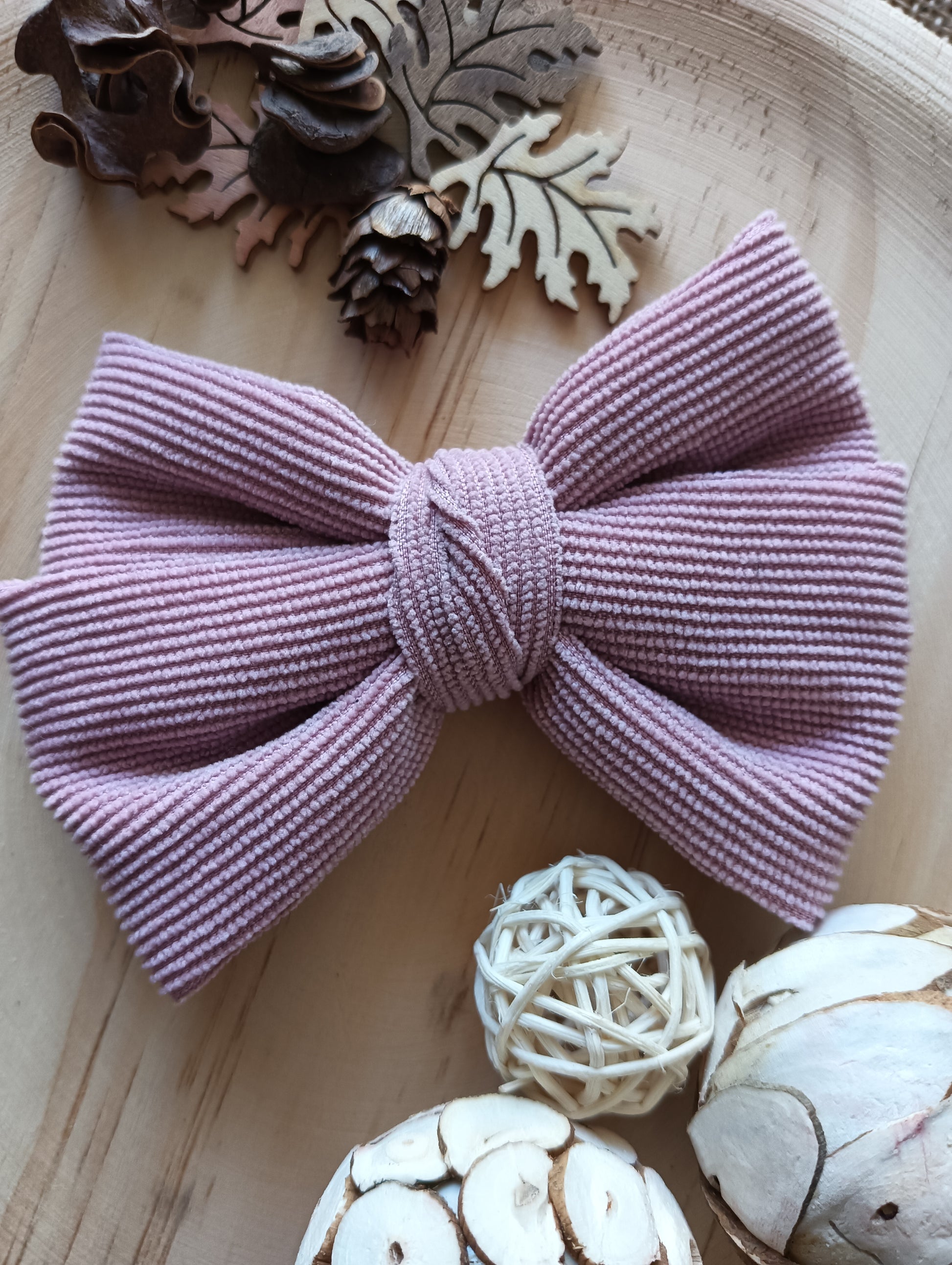 Lazo de pelo modelo mariposa doble, confeccionado con 2 lazos de tela de micropana rosa palo.
